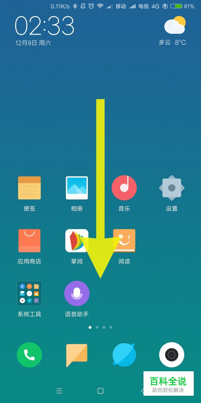 首先我们在手机主界面往下方滑动打开通知栏。