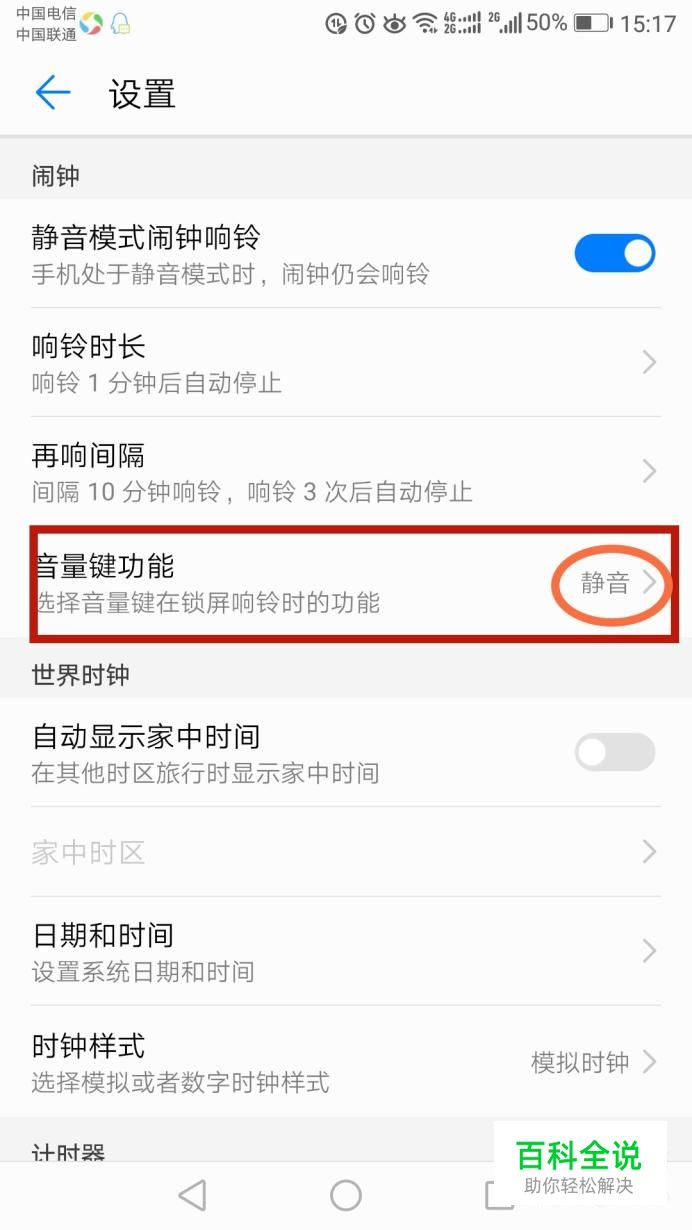 对于很多人来说,还没有睁开眼睛就想按掉闹钟,但是如果技术不数量,在手机屏幕上按掉是有点困难的,因此音量键的作用就很重要。点击第四栏设置音量键的作用。