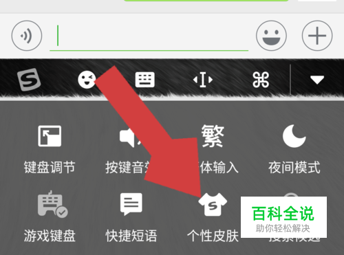 在输入法的设置页面点击“个性皮肤”,进入输入法皮肤设置页面。
