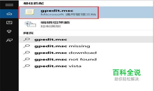 我们需要在左下角的用小娜把组组策略给找出来,输入gpedit.msc