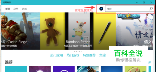 第二步,打开微软预装的官方应用商店之后,我们在右上角搜索。