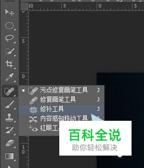 第一种方法使用修补工具,首先在PS左侧菜单中选择修补工具。