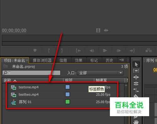 然后在premiere中新建对应的序列并且把用到的视频素材导进去即可。