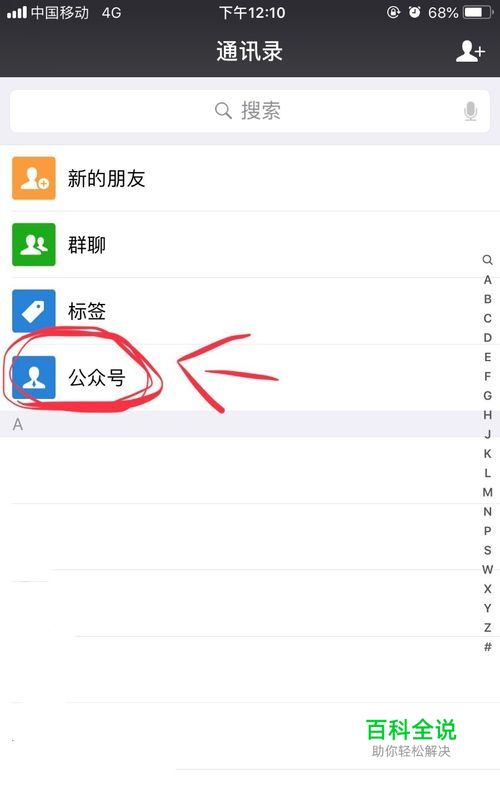 首先,如图所示,打开微信,并找到公众号