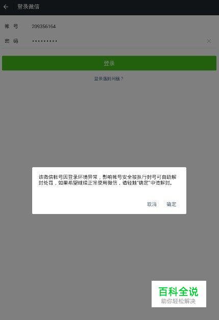 打开微信登录界面输入账号密码点击登录,微信被封号后会提示。(如图)