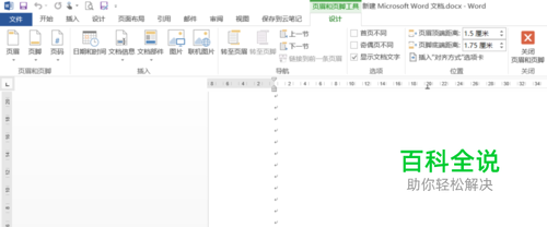 1.打开需要设置的Word文档,双击第一页底部弹出页脚设置,此时菜单栏也随之变化为“设计”,有显示页眉页脚页码等设置;