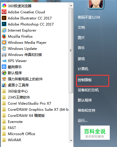 创建家庭组: 找到电脑左下角Windows开始图标,点击找到控制面板(如图中红框所示),点击控制面板。