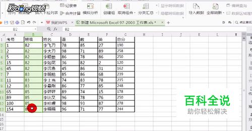 以班级为单位,对语数外数据为例进行处理。首先鼠标左键单击B2单元格,按住拖动到B13后松开,这样就选择了“班级”这一列。