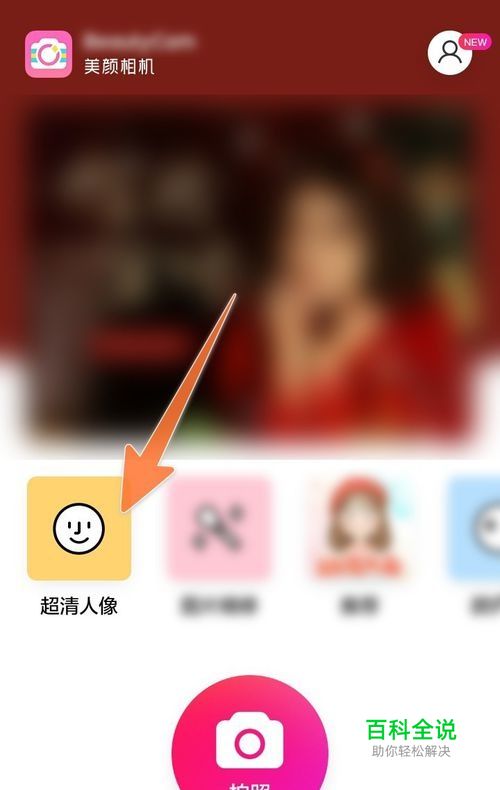 要在手机上把模糊照片变得清晰的时候,在手机上打开美颜相机这个软件,里面有个超清人像点击这里。