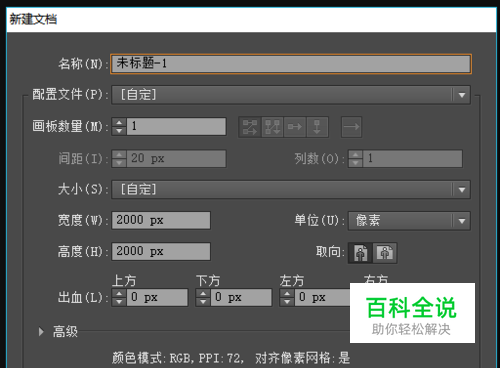 首先新建一个文件,大小根据需要大小设置。