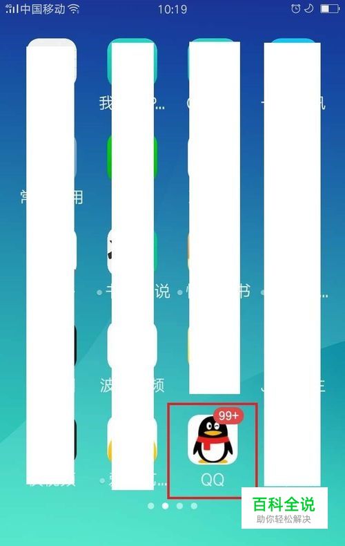 手机上安装了qq后,在桌面上找到qq图标,如图红色框内所示。