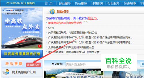 打开12306火车票订票官网,然后点击左侧导航的【新版售票】,如下图所示。