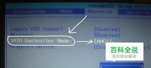 然后在选中SATA Controller mode那个选项,按回车后出来两个选项,然后选中AHCI 那个选项,将他切换为IDE即可。