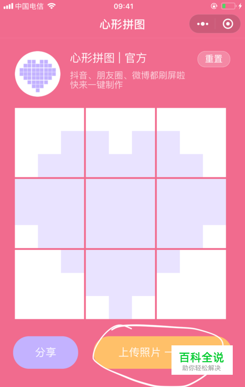 然后打开【心形拼图】点击上传图片,就可以开始一键制作了。