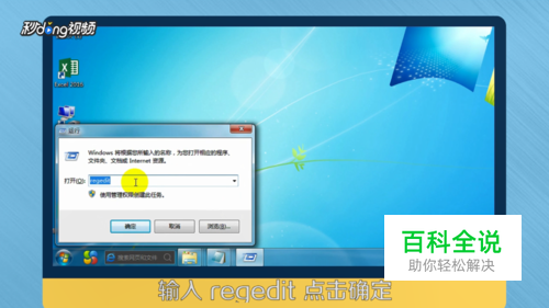输入“regedit”并点击确定。