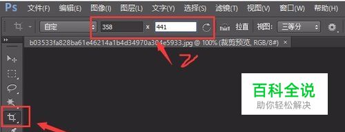 二,选择裁剪工具,在长宽比栏输入所需照片的长宽像素,然后在照片上选择好自己所需要的构图,回车就好;