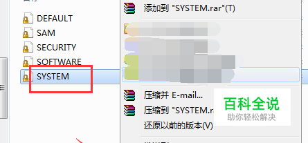 打开步骤6中文件夹后,复制其中名为system的文件,准备将该备份文件复制到系统实际注册表文件所在文件夹。