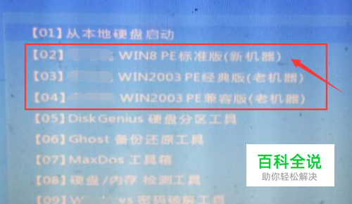 接着保存设置,重启电脑后,即可从U盘进入,打开如下启动界面。这里点击下图箭头所指选项,也可根据需要选择红框中其他任一选项。