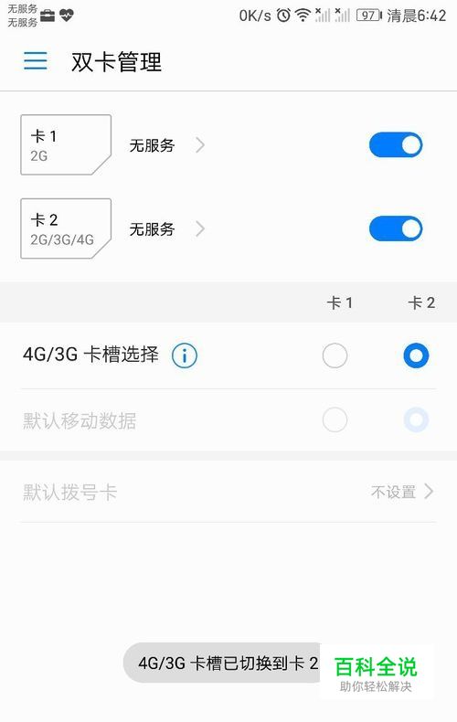 现在卡槽切换成功,4G/3G卡槽已切换到卡2,表示卡槽切换成功