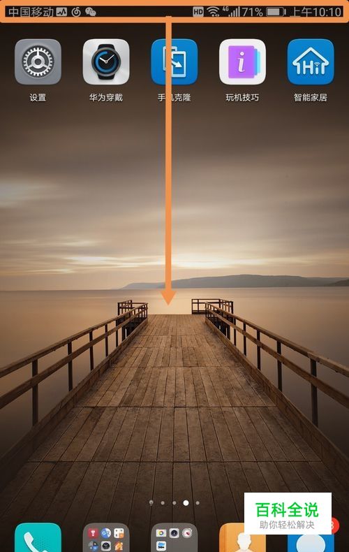 点按手机界面最上方状态栏并下滑屏幕,如下图所示。