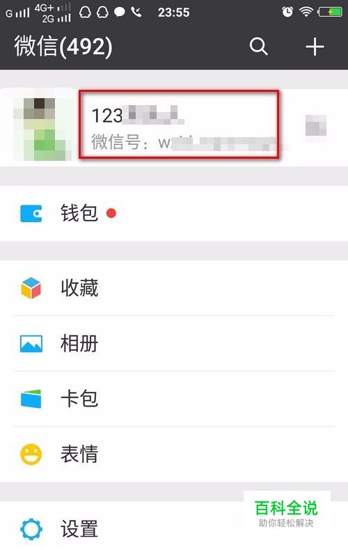 之后页面跳转,在最上方可以看到自己的微信名及微信号,点击微信名。