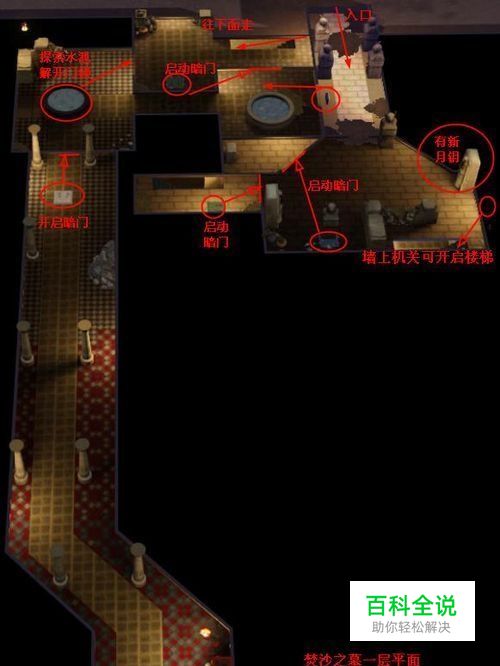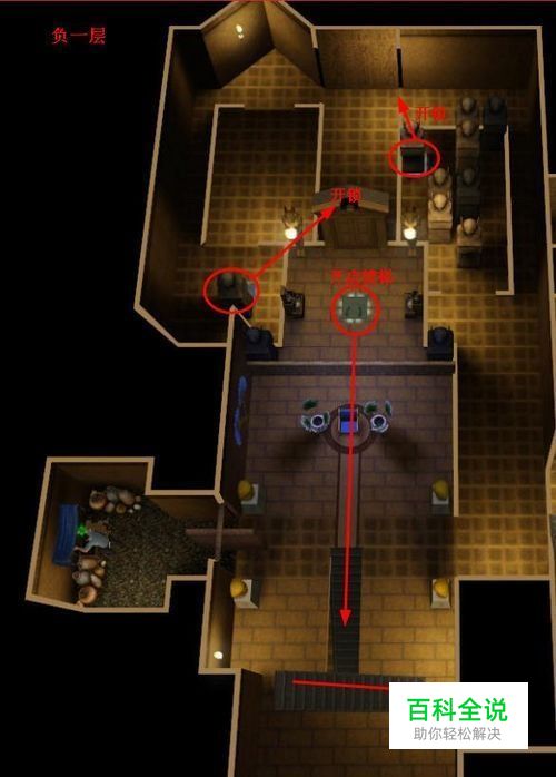 负三层的机关分别对应开启不同的门锁, 大家留心一下门与机关之间标注的线就不难发现了....