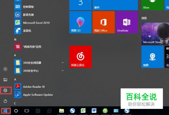首先,我们点击电脑左下角的微软按钮,弹出的界面,我们点击设置;
