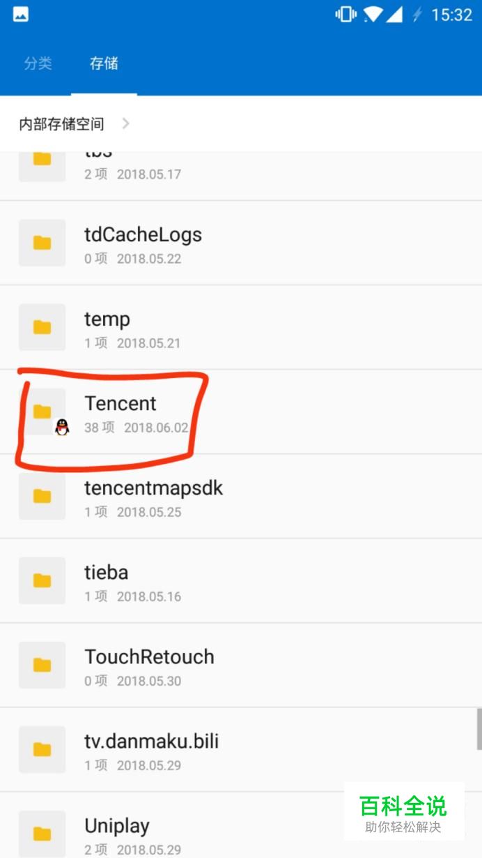 在内部存储里面,找到“Tencent”命名的文件并打开