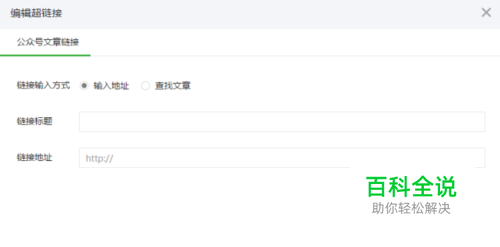 直接输入链接插入文章,点击超链接图标后,可直接输入链接和对应的文本内容,在图文消息中插入文章。