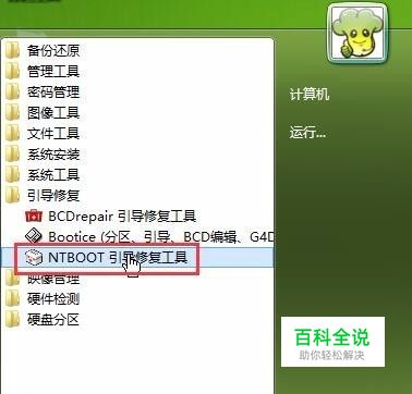 点击开始菜单,选择“引导修复-NTBOOT引导修复工具”,如下图所示: