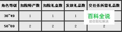 任务背景 各大家族如雨后春笋般涌现,九大门派一方面高兴自己的弟子能有更好的发展,另一方面也对家族抱有一定戒备之心。各个家族为了自己在江湖上更好的生存,也深知九大门派乃江湖泰山,所以派成员将“家族特产”送至九大门派以示友好,消除疑虑。 领取任务 回到自己的家族,找到NPC家族特产商,点击对话领取任务。领取任务需消耗家族特产、礼盒以及行动力,家族特产可在家族特产商处消耗家族声望进行兑换。 扣除的特产、礼盒数量,以及发放的精美礼品数量与角色等级相关,具体如下表所示: 任务奖励 任务中可能遭遇特殊暗雷怪,打败怪物有几率获得阵法元素奖励。 完成任务后,会获得大量现金奖励。 其它规则 任务失败或者放弃任务,需要等待5分钟才可再次领取任务。 加入家族不满24小时者,无法领取家族特产任务。 家族特产任务的次数和押镖玩法的次数记在一起,即每日可完成押镖任务和家族特产任务的总次数为50次,领取任务时便记为一次,即使失败或放弃,也算作一次。 任务状态下,不能使用飞行旗以及飞行符,不能使用回门派技能。 任务状态下,不会遭遇普通暗雷怪,但是可能遭遇特殊暗雷怪,打败怪物有可能获得阵法元素奖励。
