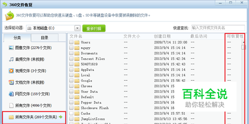 扫描结束后,360文件恢复功能会显示丢失文件的情况,可恢复性分为四种:高、较高、差、较差。当然高和较高两种文件的可恢复性较好,另外还有一种是文件夹可恢复性为空白的,这种情况文件夹是绝对可以恢复的,但是文件夹内部的文件可能已经被擦写,文件夹恢复后不一定能够找到想要的文件。