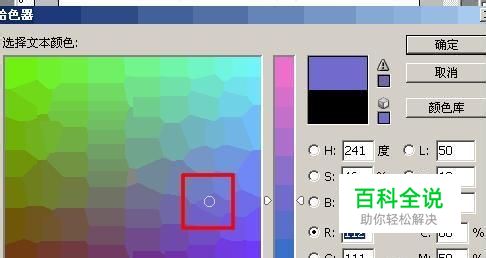 图中,你想选择什么颜色,就请先点击中间的那竖着的颜色,然后,还要再点击左边那一大块中的颜色,如红线圈住的部分。 注意,这里非常关键,如果你只点击竖条那里,不点击红线圈住那部分,是无法PS中的文字颜色的。 这样,就可以解决PS修改文字颜色的问题了。