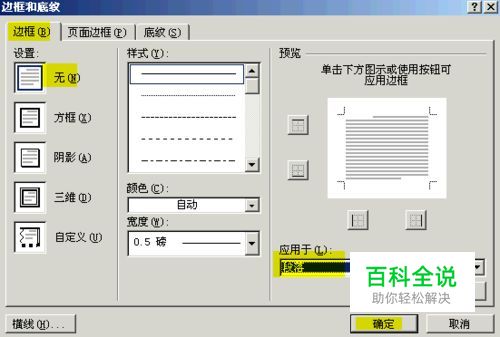 在弹出的“修改样式”窗口中,先把“添加到模板”的复选框选项勾上,然后点左下角的“格式”按钮,选“边框”选项,在“边框和底纹”选项窗中,边框选“无”,之后连续确定
