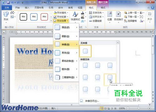 在Word2010中设置艺术字映像效果