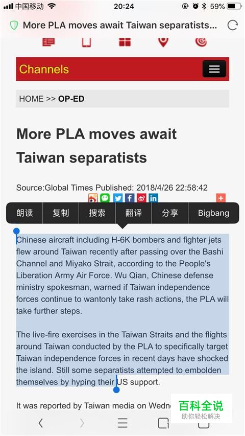 首先在我们的手机上打开一个英文网页,如下图所示。
