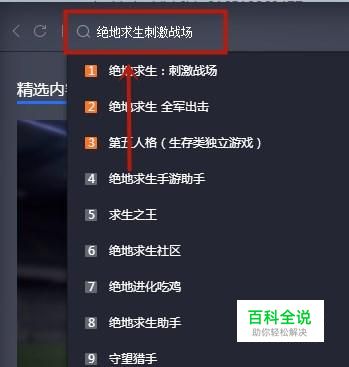 输入绝地求生刺激战场(或者全军出击),点击回车键(你也可以点击右侧的搜索按钮),如下图所示。