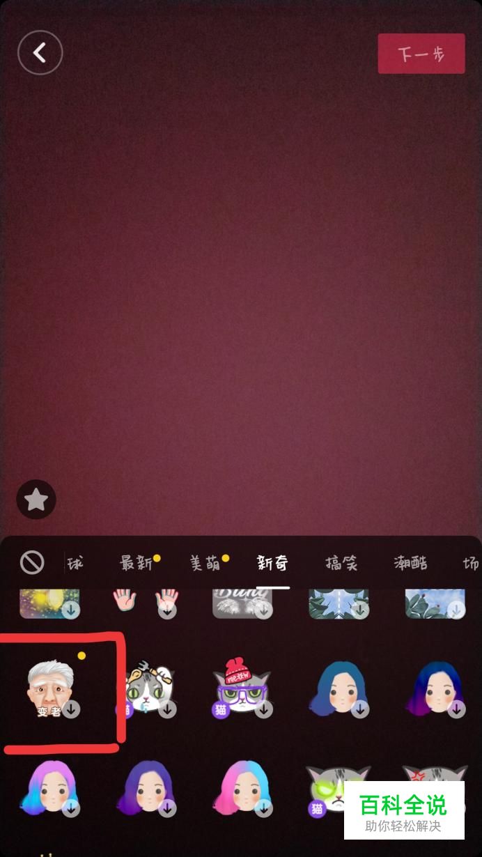 在众多特效中的,点击“新奇”中的“变老”即可找到变老的特效了。