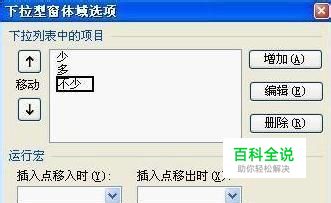 当在调查问卷中如果有需要二选一,或多选一问题时,我们可以使用“下拉型窗体域”功能。方法是:先将光标定位到要选择的答案位置,在“窗体”功能区中单击“下拉型窗体域”按钮,此时WPS会自动插入一个窗体域,用鼠标双击窗体域,待激活“下拉型窗体域选项”对话框后,在对话框中单击“增加”按钮,然后在选择框中输入可选择的内容(如图3)。