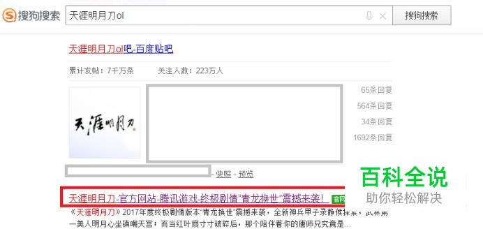首先,使用搜狗搜索“天涯明月刀ol”,在搜索结果中点击进入带有官网标识的天涯明月刀官方网站。