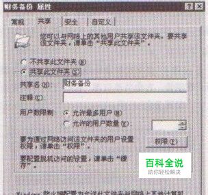 右击要共享的文件夹,执行【属性】 命令,xp弹出文件【属性】对话框,选择【共享】 选项卡,选中【共享此文件夹】单选按钮,这时 可以看到【权限】按钮可用.如图(1)所示