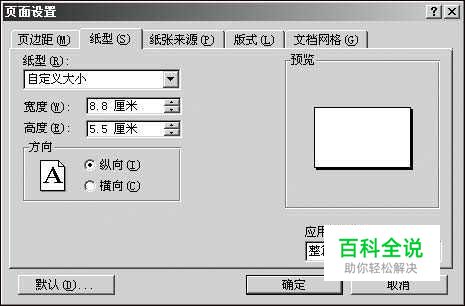 制作单张名片 新建一个文档,单击菜单“插入→对象”,弹出“对象”对话框,选择“Microsoft Word 图片”类型。接着单击“文件→页面设置”,在弹出的“页面设置”对话框中将“纸型”选项卡中的“纸型”项设为“自定义大小”,然后输入纸张大小为宽度 “8.8cm”、高度“5.5cm”(5cm也可以)。在右侧“预览”部分可以看到单张名片的版式已经出来了(如图1所示)。 点击切换到“页边距”选项卡设置界面,设置上、下、左、右页边距、装订线均为数字“0”。点击“确定”按钮返回到Word编辑状态后,根据需要设计好名片的内容和样式后单击“文件→关闭(c)文档……”菜单项。