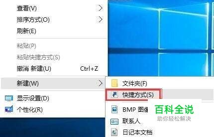首先在win10桌面空白处点击鼠标右键,然后选择新建快捷方式,如图所示: