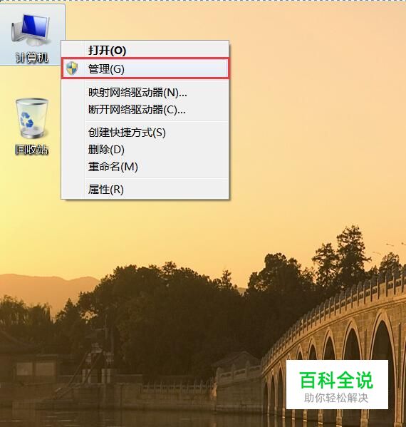 首先,对着Windows桌面上的计算机图标击右键,选择“管理”菜单选项。