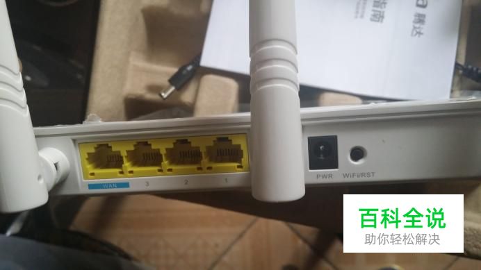 首先来看一下路由器后面的接口。图中这个下面有蓝色标识的接口就是WAN口,光猫出来的网线就是插在这里,插在别的接口就会提示“WAN口未连接”。