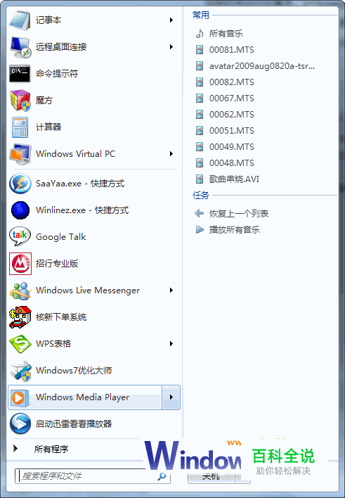 Jumplists(跳跃菜单) Jumplists(跳跃菜单)是Windows 7中的一项新功能,其中包含着用户最近经常访问的应用程序菜单和文件列表。通过Jumplists(跳跃菜单),用户可以快速访问自己喜爱的应用程序。同样的,Windows 7的开始菜单中也具备Jumplists(跳跃菜单)。 开始菜单的Jumplists功能