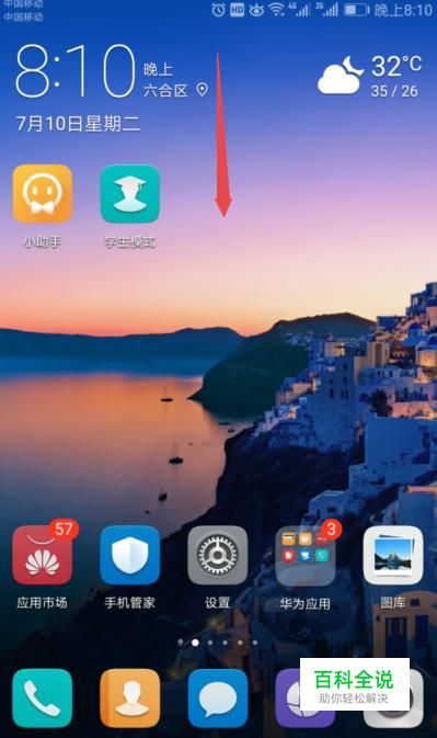 我们还可以打开我们的手机,然后下滑一下手机桌面的上方;