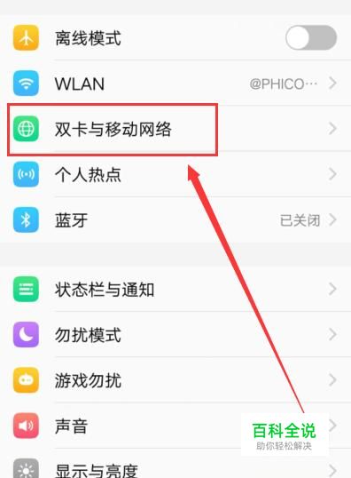 进入设置后,找到“双卡与移动网络”点击并进入,如图所示。
