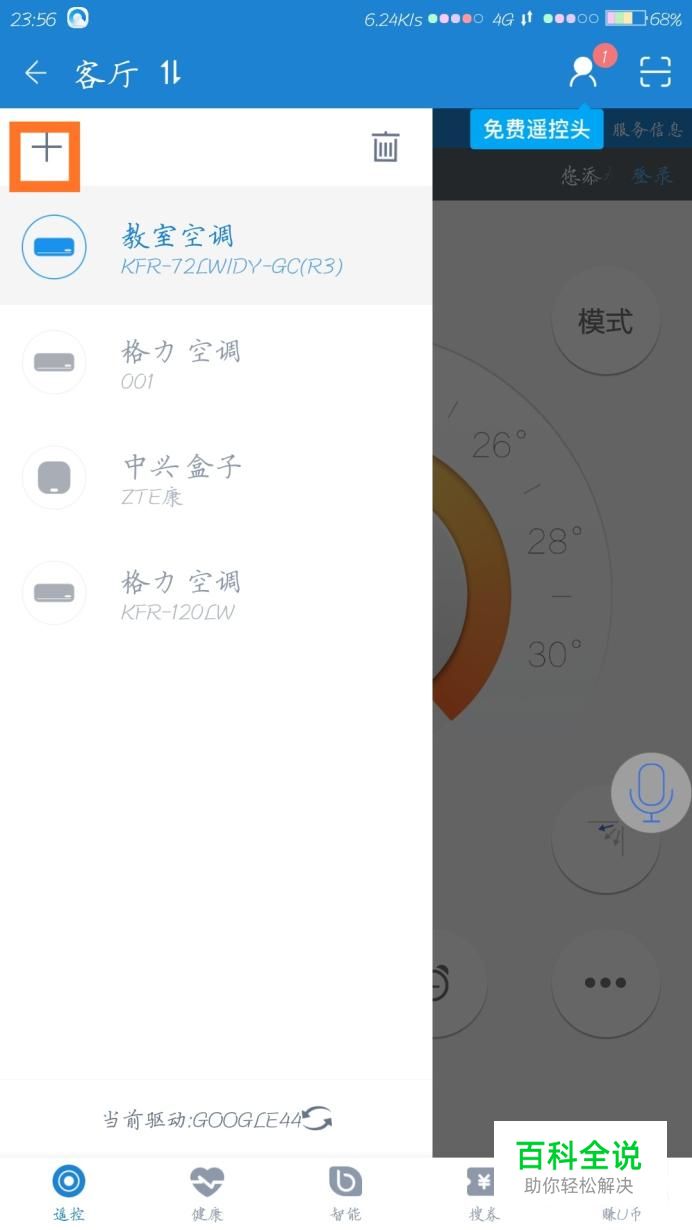 安装打开遥控精灵APP,点击左上角的加号键。