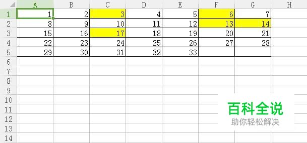 选择第一行和第一列的交叉点A1单元格,如下图所示。